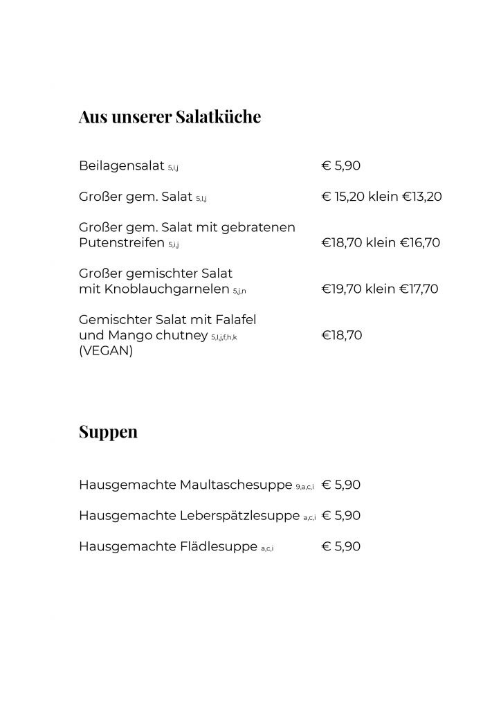 Unsere Speisekarte